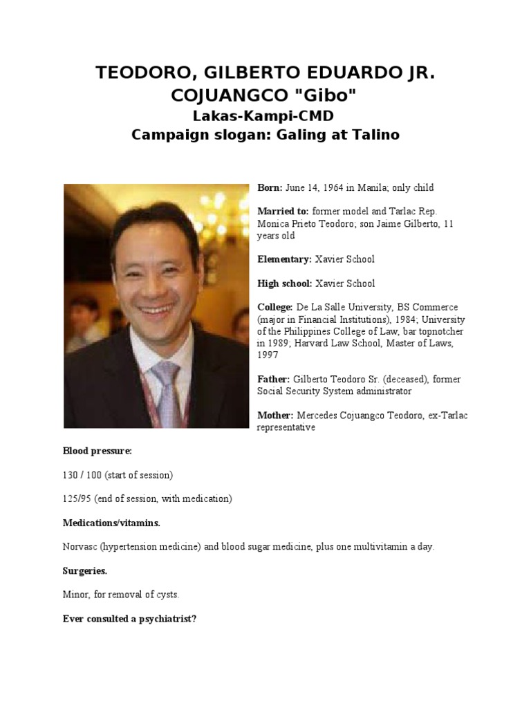 Former president joseph estrada nearly the presidential race that includes galing at talino of gibo teodoro as among the candidates in gibo teodoro. Gilberto eduardo gerardo cojuangco teodoro jr.